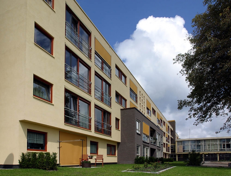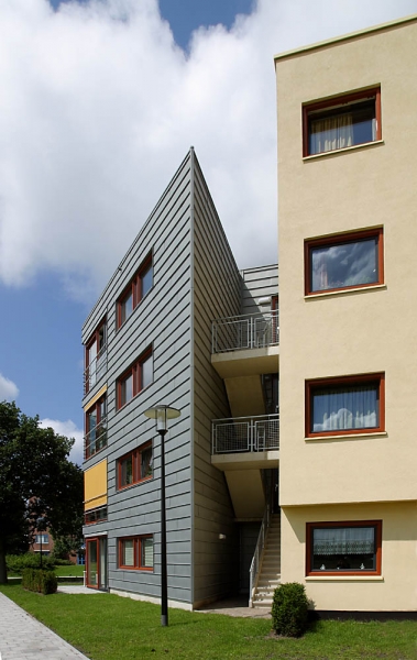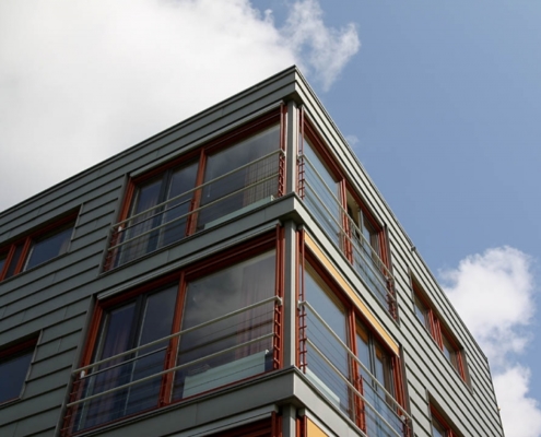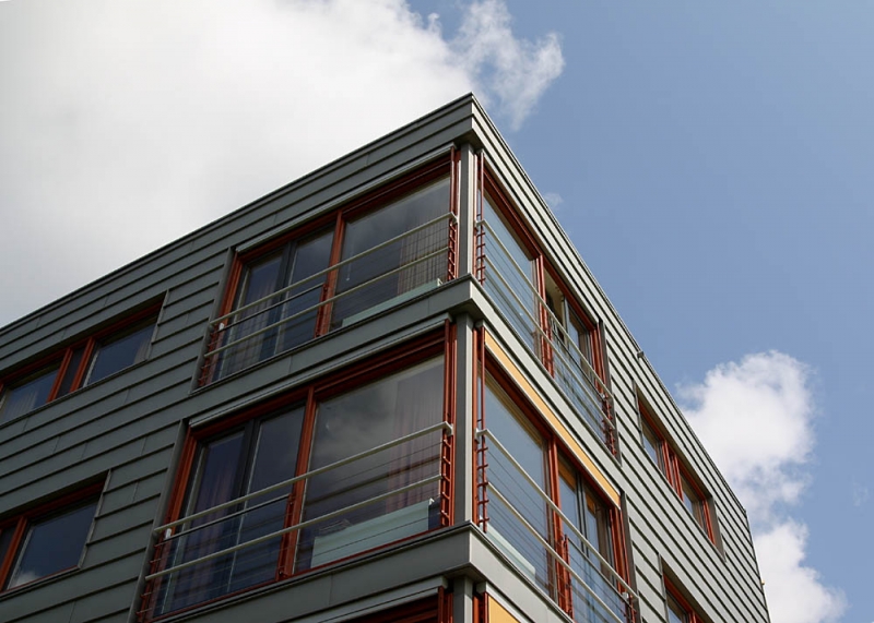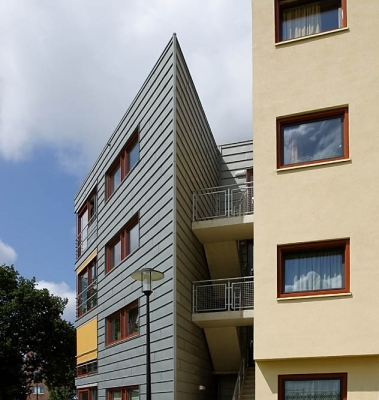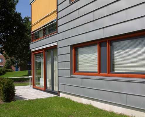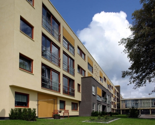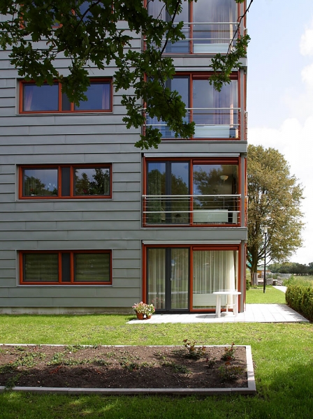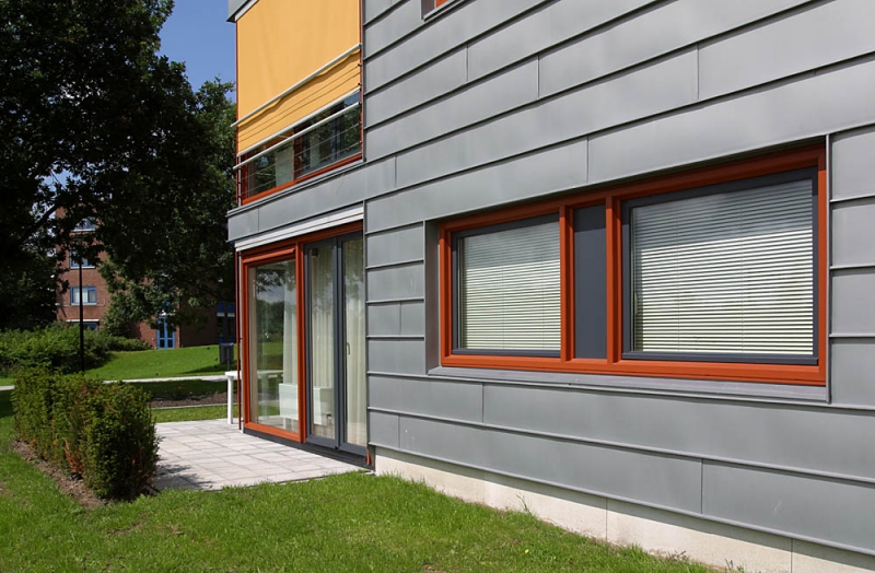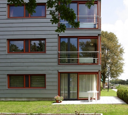 Voor de opdrachtgever, woningbedrijf Velsen, was bij de uitvoering de balans tussen oude bouw en nieuwbouw en esthetiek en onderhoud essentieel. Wiegerinck Architecten uit Arnhem koos voor kunststof kozijnen in de kleur Koperbruin (CN nr. 90) en antraciet (CN nr 67) dat, in combinatie met het zinkwerk en het gele stucwerk van de gevels een gewaagde en frisse uitstraling geeft.