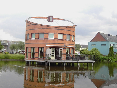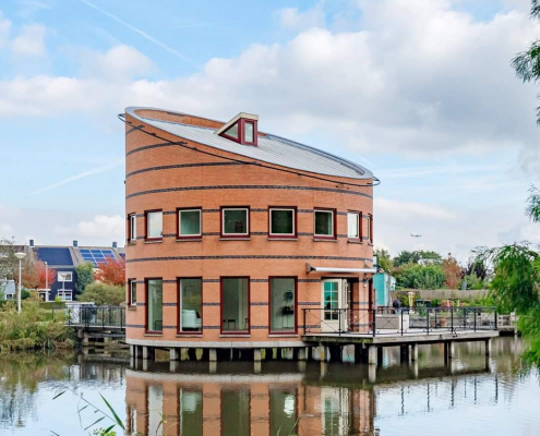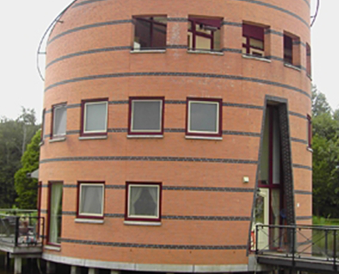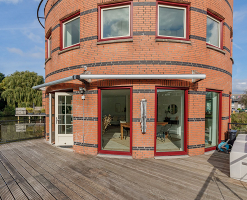 Een uniek ontwerp waarbij duurzaamheid en eigenheid hand in hand gaan. De keus voor kunststof kozijnen in de combinatie wijnrood (CN nr. 71) en cremewit (66) doet het ook in moderne bouw uitstekend.